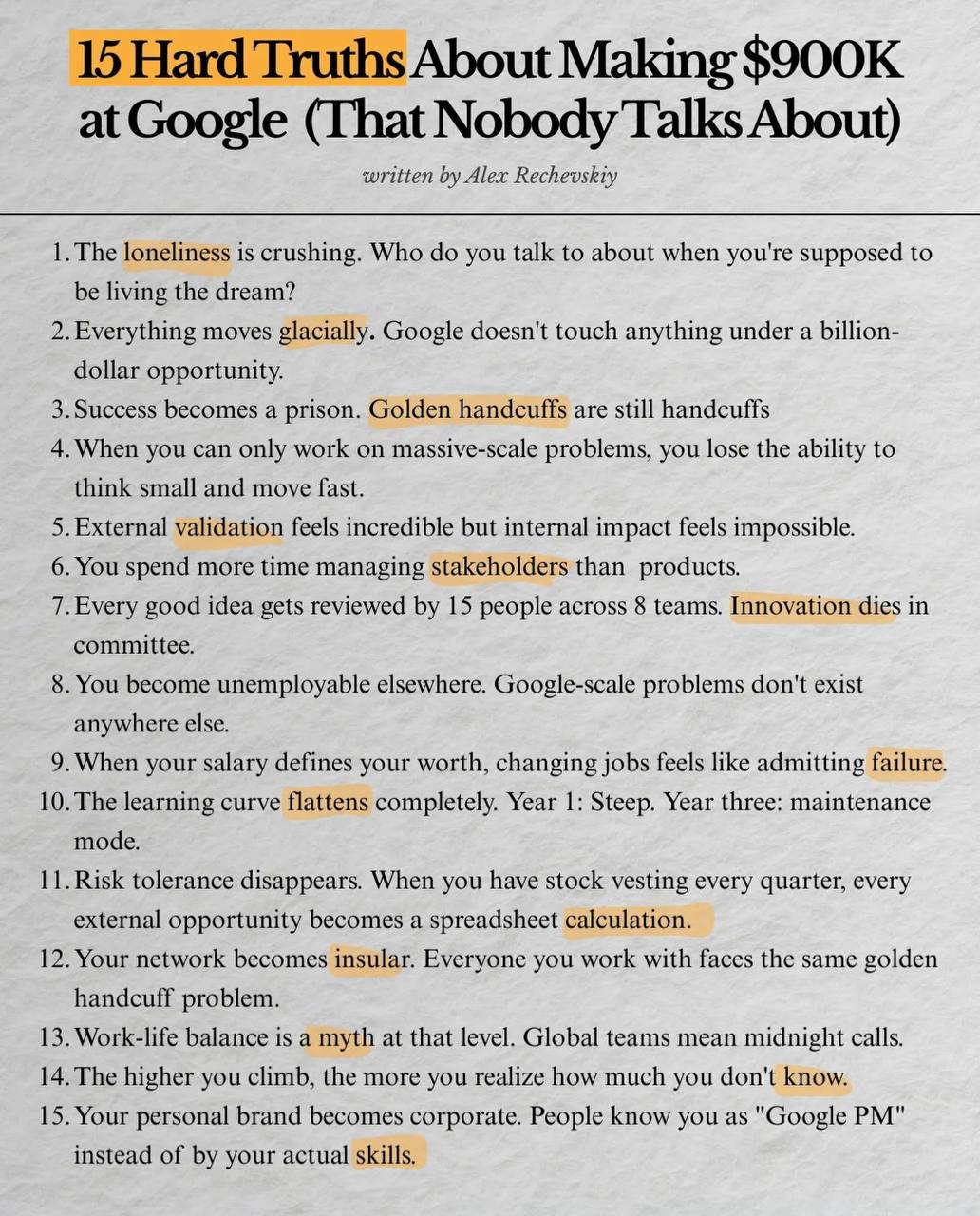 Мой знакомый Алекс написал классный пост про работу в Гугле.