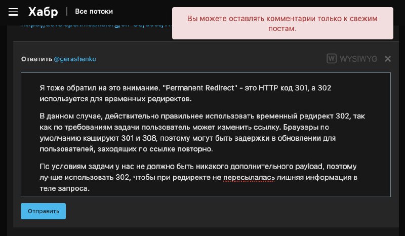 Мой первый в жизни комментарий на Хабре был отклонён в момент, когда я написал ответ, вычитал его и нажал "отправить".