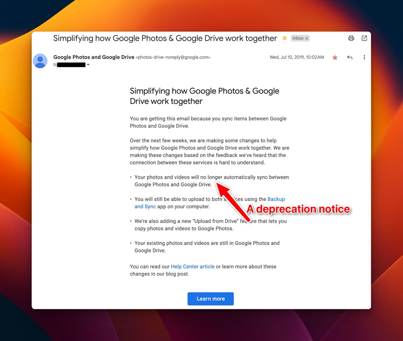 Нашёл емейл, где Гугл удалил мою любимую фичу в Google Photos (после чего я перестал ими пользоваться), назвав это “упрощением” продукта.