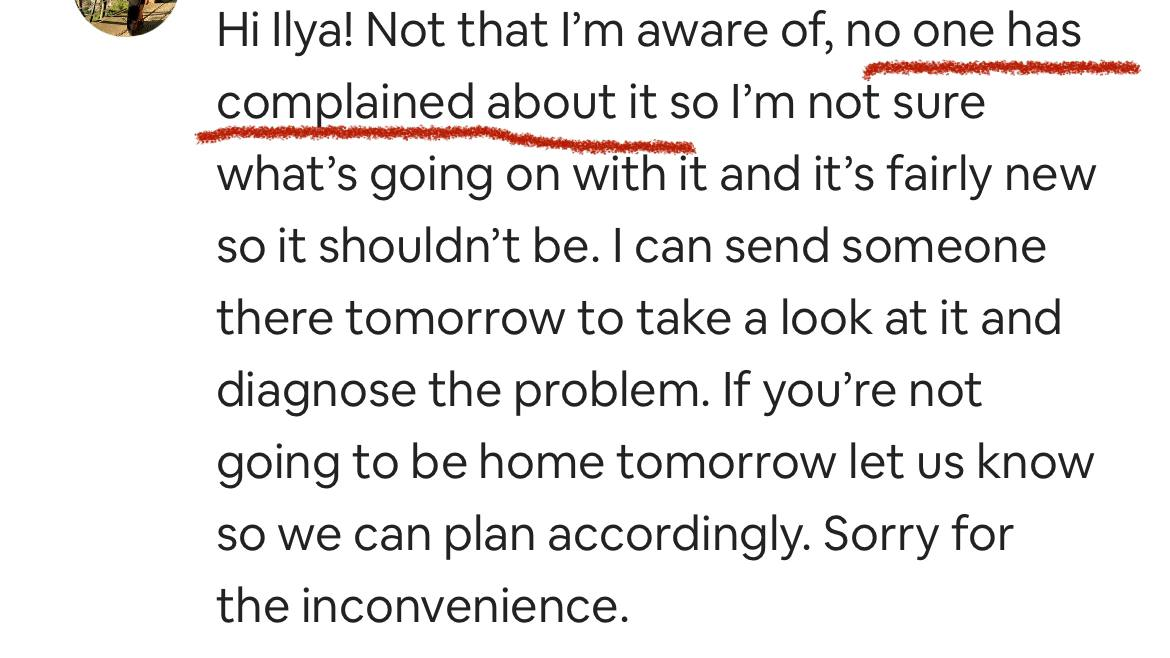 Когда ты покупаешь какой-то продукт или услугу, например, торт или останавливаешься в Airbnb, и с ним вдруг что-то не так, ну, например, плесень в клубнике или ванна засорилась, и ты жалуешься поставщику на эту проблему, самый (имхо) тупой ответ это «до вас никто не жаловался». Типа мы конечно исправим, но ты всё равно сам олень.