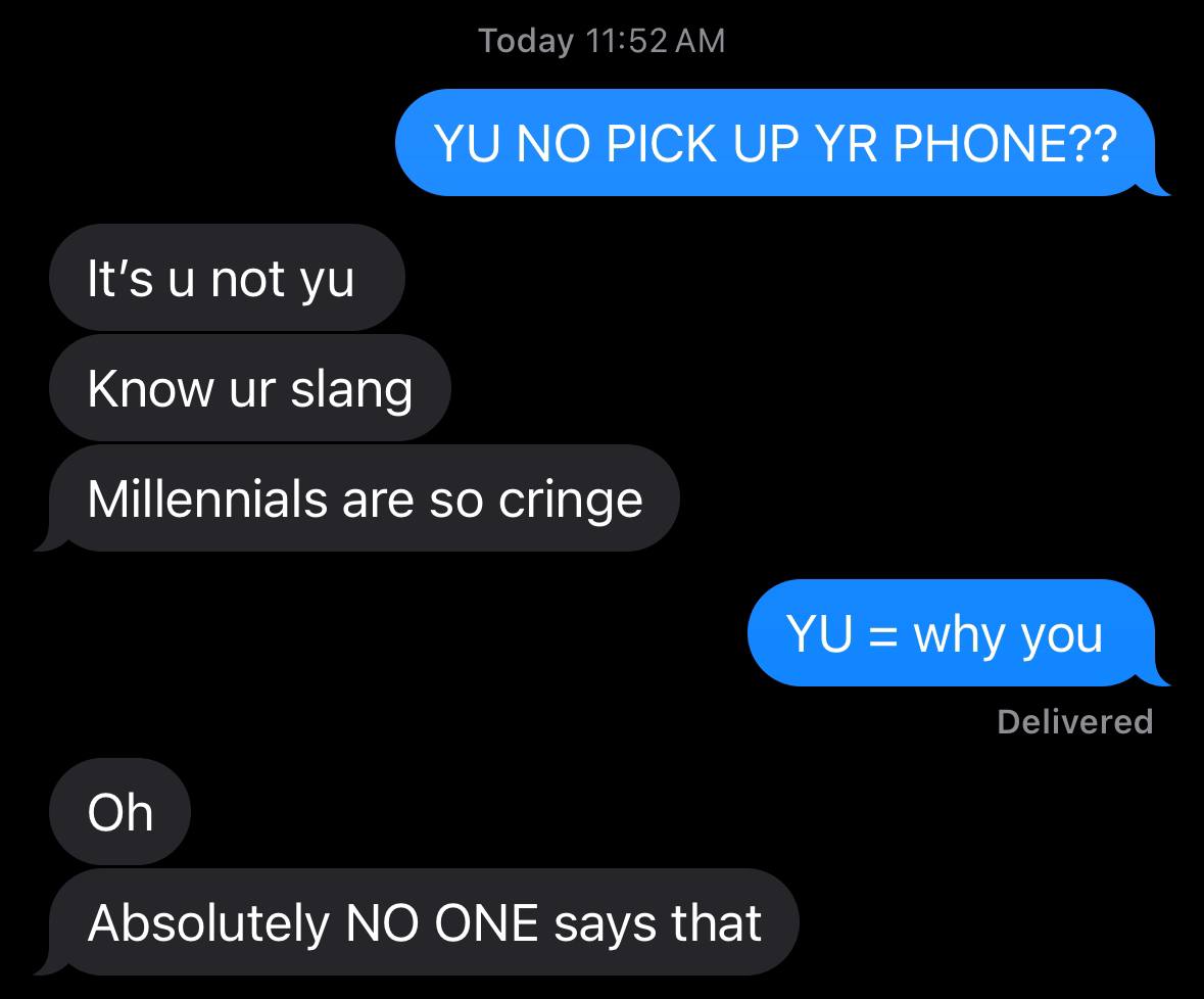 Ещё прикол в том, что слово миллениал и genz он узнал только вчера от меня. Теперь сказанное мной используется против меня.