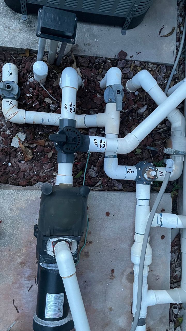А теперь вернёмся к насосу для бассейна. Эта такая здоровенная, тяжеленная хрень, которая крепится болтами к куску бетона и соединяется с бассейном кучей труб.
