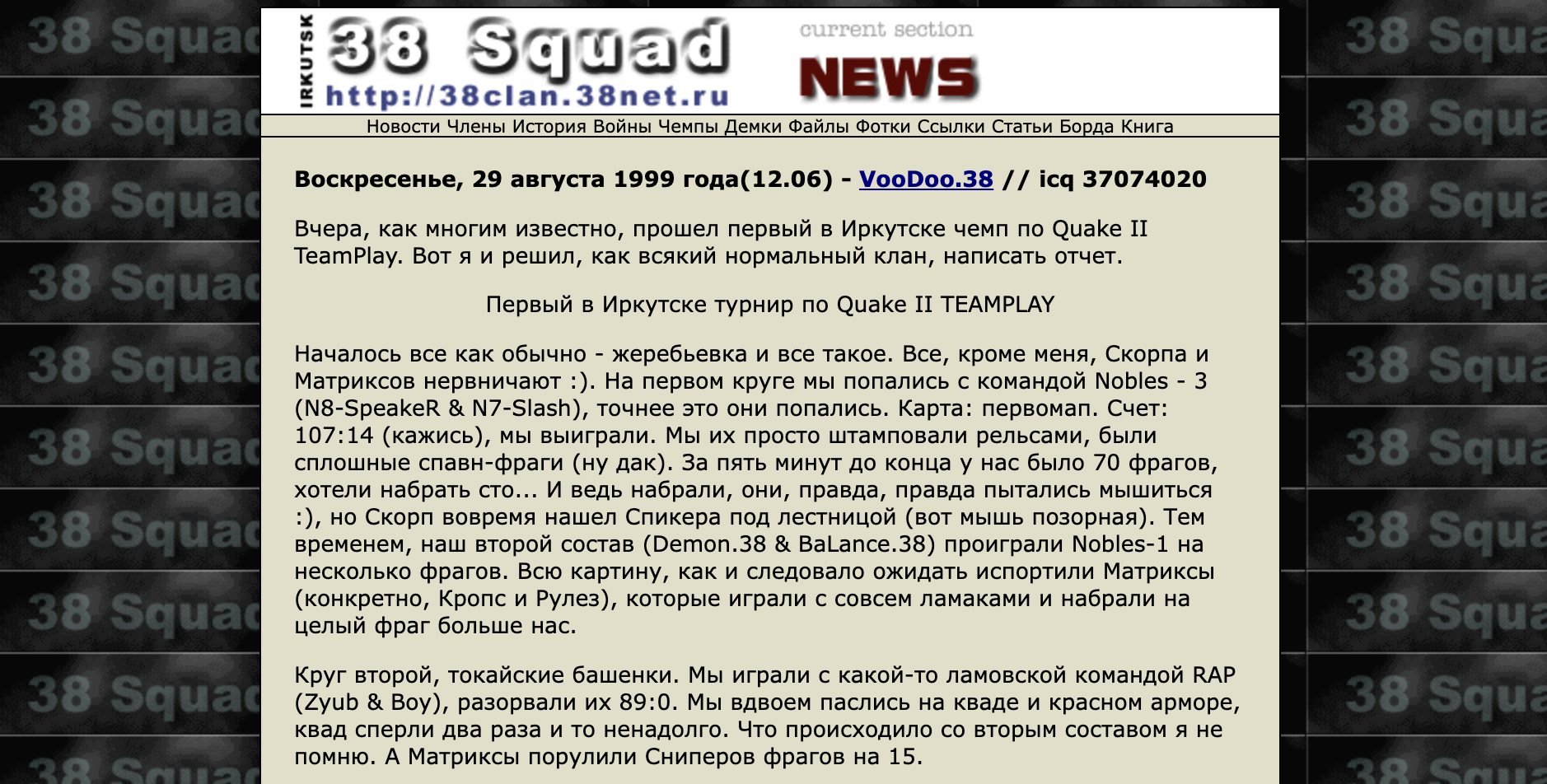 В 1999, когда мне было 15 лет, я начал вести колонку на сайте своего клана по Quake 2, где писал о чемпионатах по этой великой компьютерной игре, рассказывал о жизни клана и иногда засирал кланы-конкуренты. Довольно стандартная история для гиков того времени.