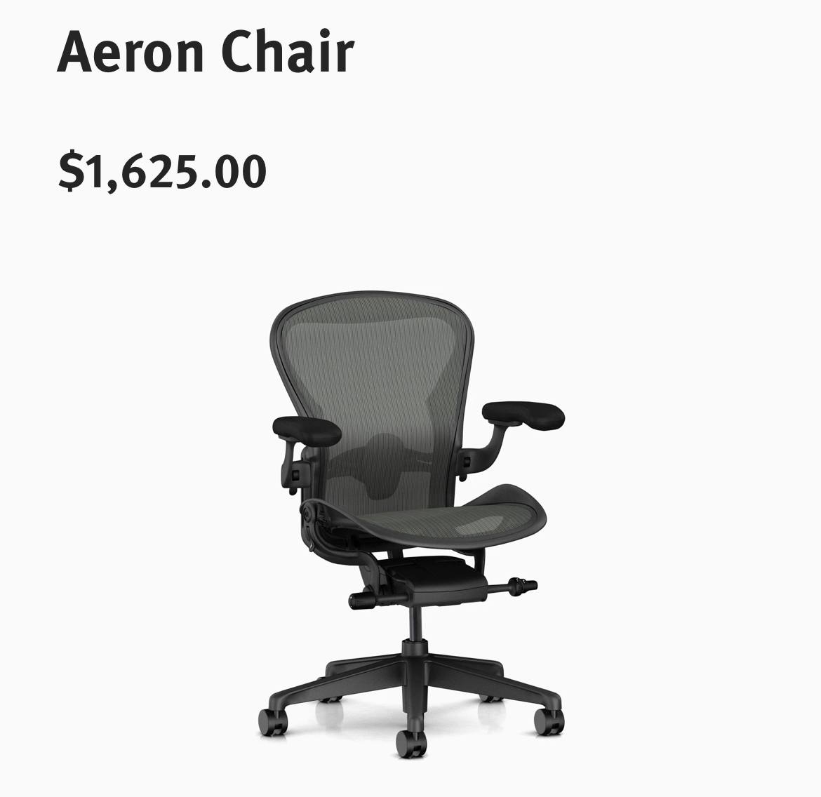 По поводу цены на стул. В Штатах на официальном сайте Aeron стоит около $1.5к с налогами. Я взял свой БУ за $630 два года назад. Эти стулья популярны у стартапов — это типа как авокадо тост у миллениалов. Работать не будут, если их не посадишь на Herman Miller.